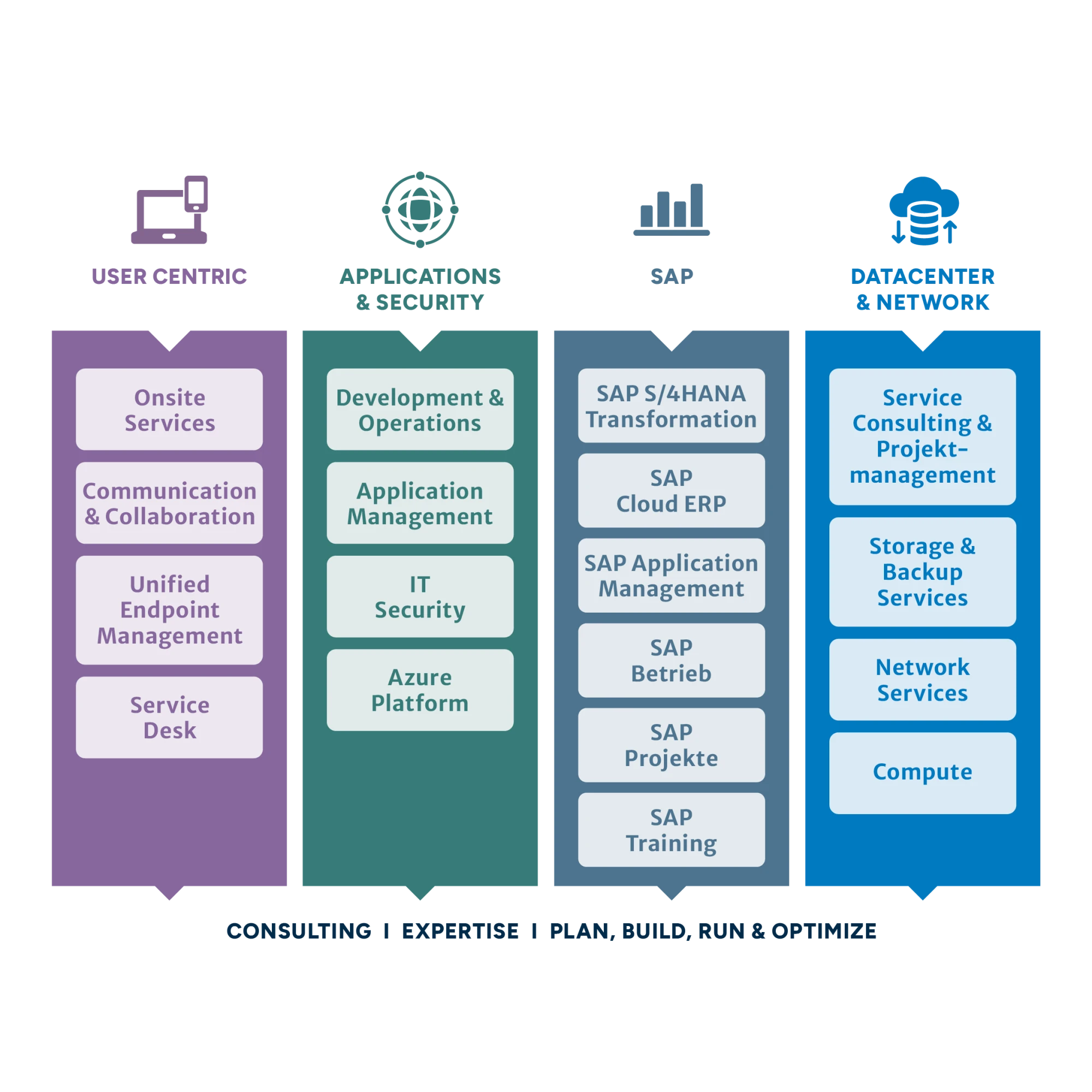 SAP S/4HANA Transformation, SAP Cloud ERP, SAP Application Management, SAP Betrieb, SAP Projekte, SAP Training - Datacenter & Network