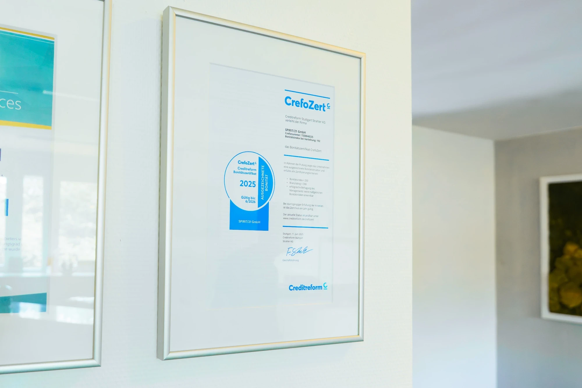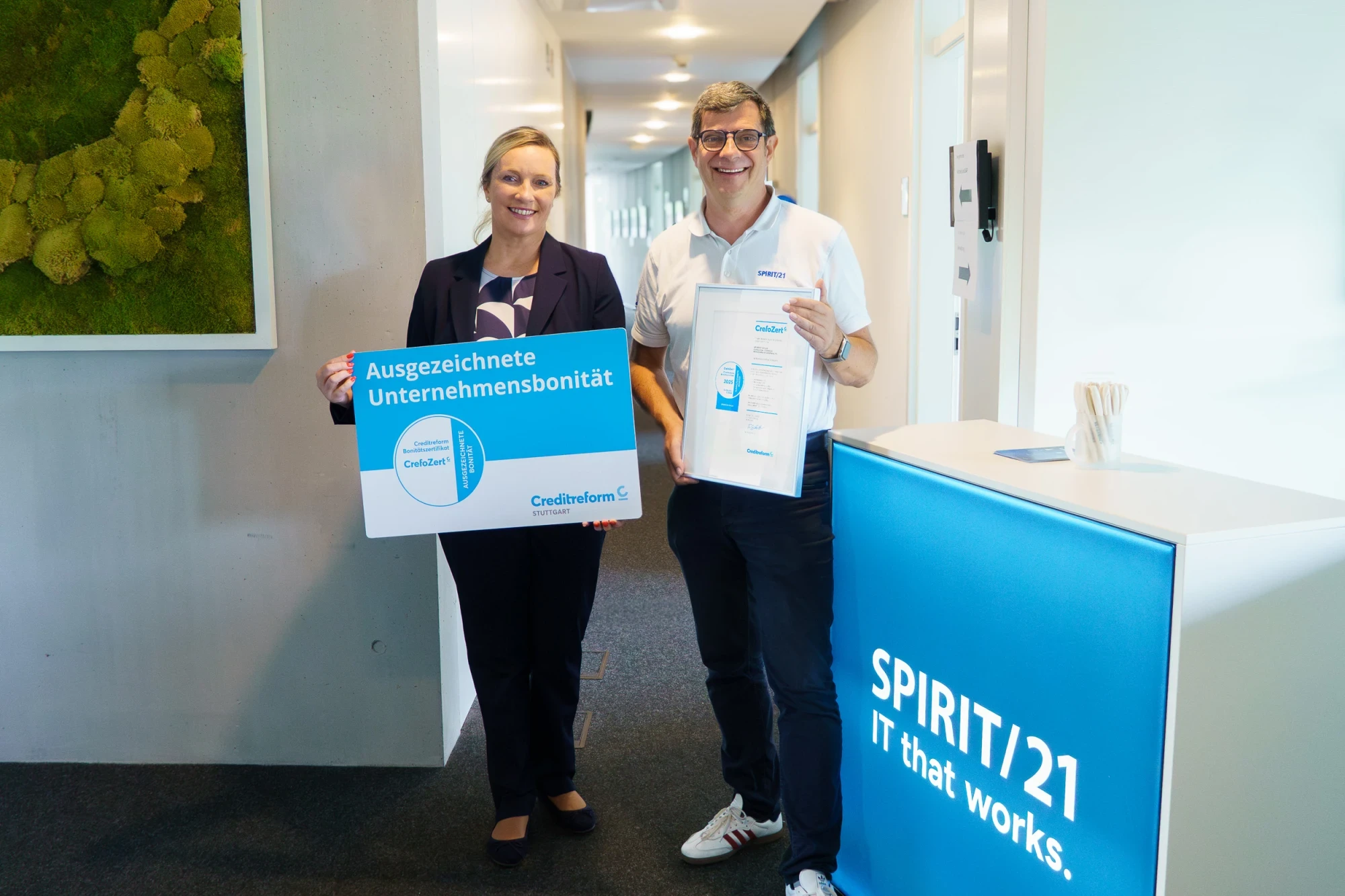 SPIRIT/21 wurde 2025 erneut mit dem Bonitätszertifikat „CrefoZert“ von Creditreform ausgezeichnet. Damit gehören wir weiterhin zu den wenigen Unternehmen unserer Größe in Deutschland mit ausgezeichneter Bonitätsstruktur.